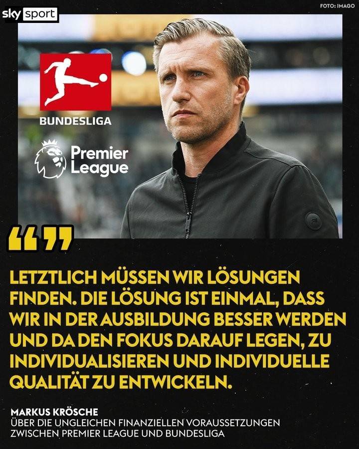 直播吧9月9日讯 法兰克福体育总监马库斯-克勒舍认为,面对与英超联赛的不对等竞争,德国青训体系亟需迎头赶上。